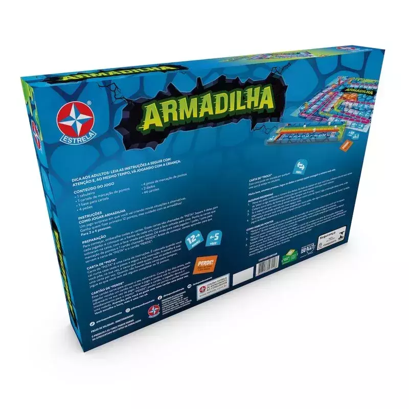 Armadilha é um jogo surpresa em que você cria novas situações e alternativas. Jogue os dados, mova seu peão, coloque cartas de pistas ao lado dos espaços em que caiu e siga as instruções. Caso você caia em um espaço já ocupado com uma carta de pista, siga as instruções da mesma e só pare quando cair em um espaço vazio. Quando você acha que vai ganhar, alguém pode te atrapalhar. Muitas emoções te aguardam nesse relançamento da Estrela!