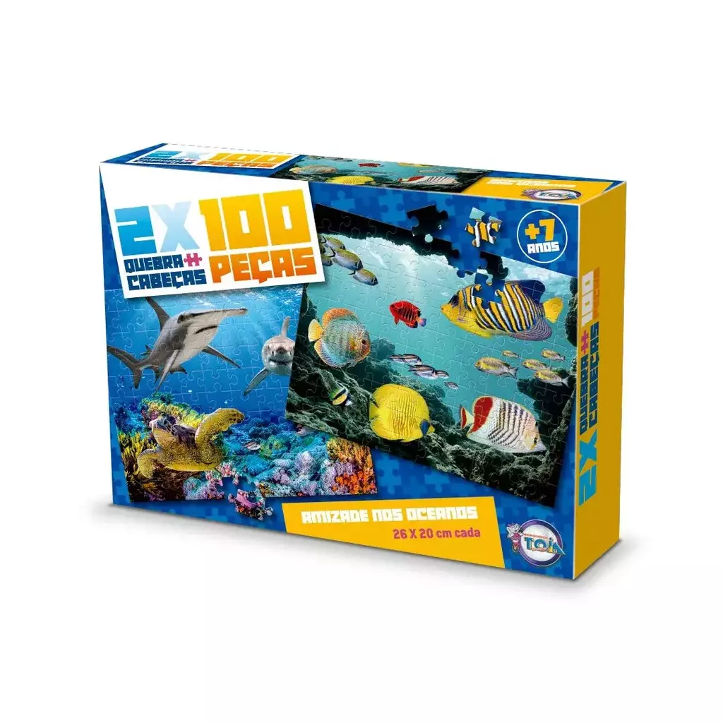 Quebra Cabeça Puzzle Oceanos - 2 unidades de 100 peças - 26 X 20 cm - 12178- Tóia - Toia - Puzzles Você pode ter um quebra-cabeça de oceanos incrivel, são 2 puzzles para você montar. São 2 placas de quebra cabeça de 100 peças cada placa, totalizando 200 peças. Este brinquedo ajuda a criança na coordenação motora e trabalha a percepção de espaço e cores. Dimensão de cada placa montada:Largura: 20 cmComprimento: 26 cm Dimensão da embalagem: 30 x 21 x 6 cmPeso aprox: 300 g Indicado para crianças a partir de 7 anos.